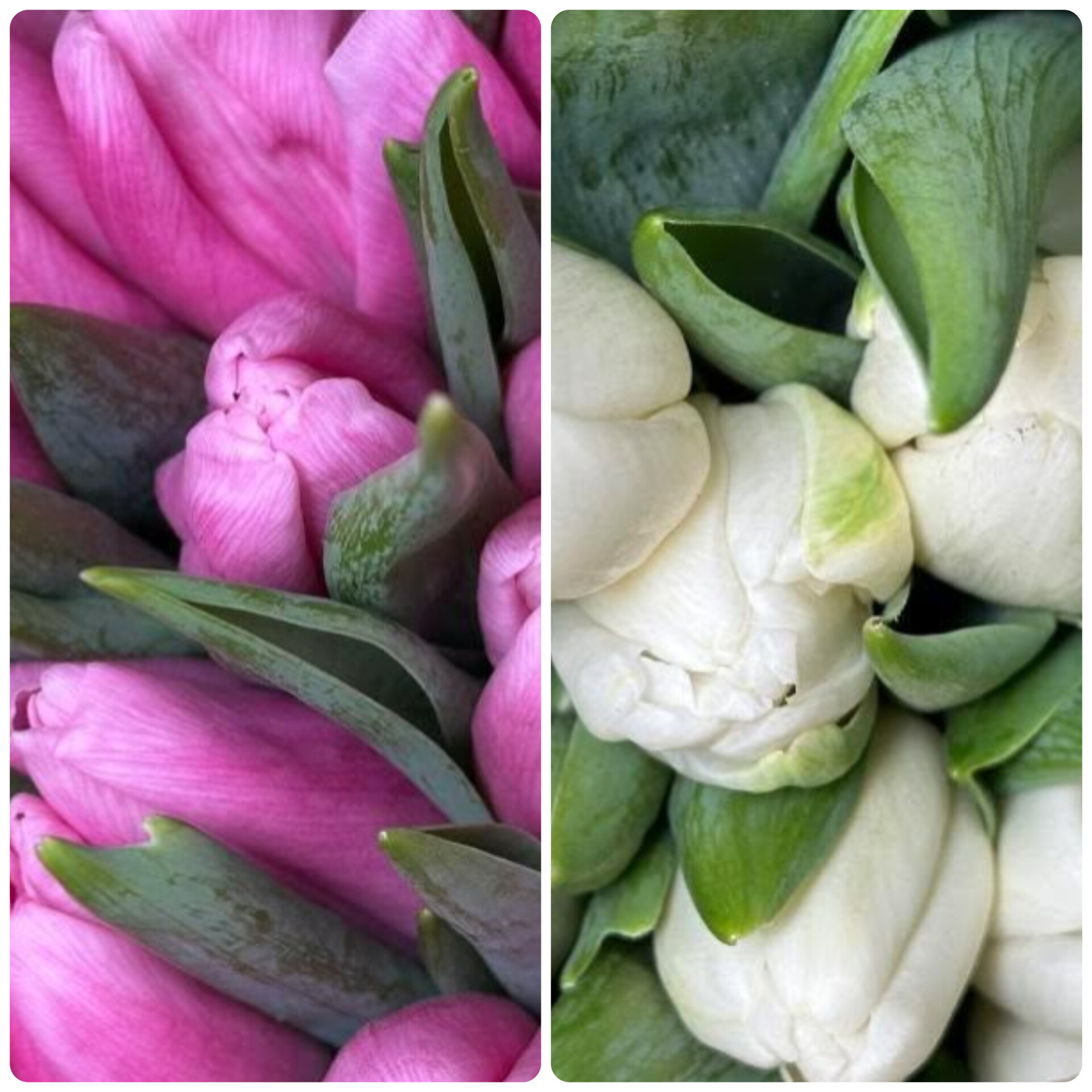 25 тюльпанов микс белых и розовых в упаковке