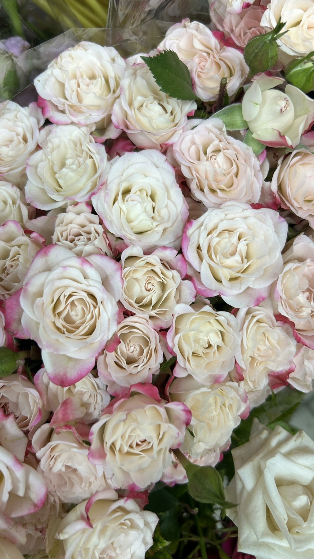букет из 11 веток розовых кустовых роз в розовой упаковке