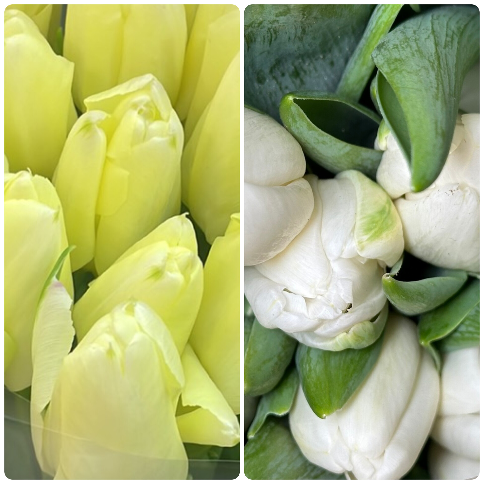 Цвет тюльпанов можно выбрать. Доступны красный, жёлтый, фиолетовый, белый и розовый. Пожелания к гамме можно указать при оформлении заказа. По умолчанию композиция формируется из наиболее близких к фото компонентов.