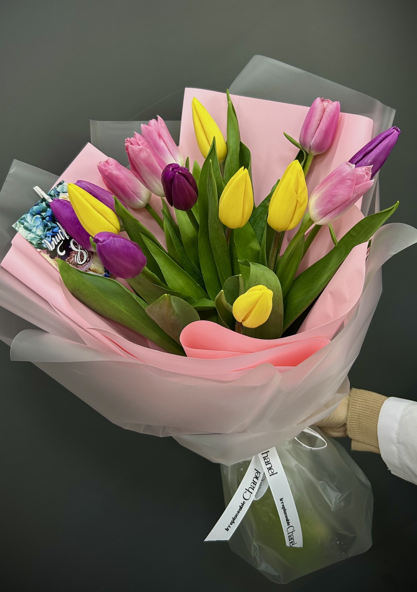 Оттенки тюльпанов и упаковки могут отличаться от представленных на фото с учетом наличия товара