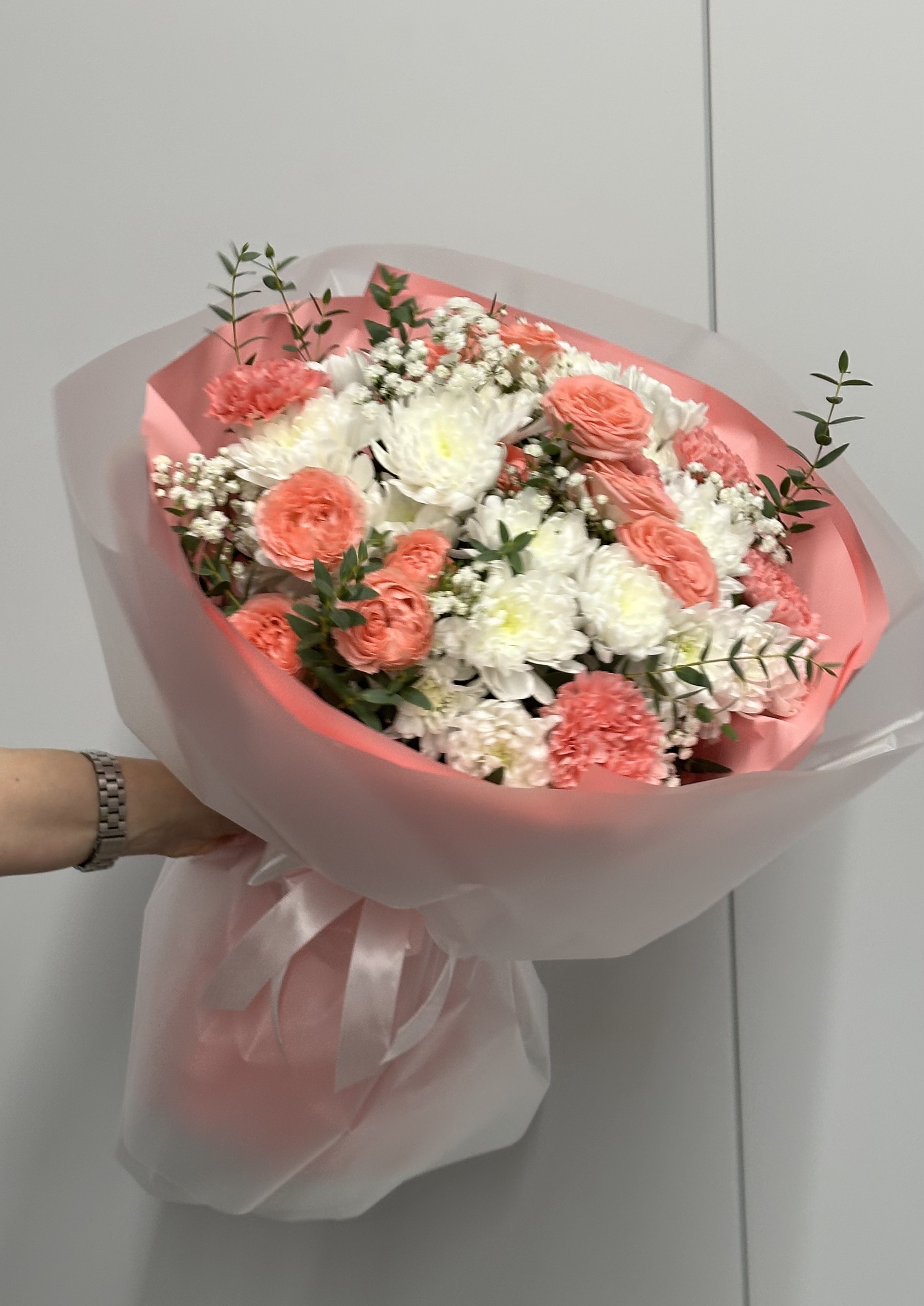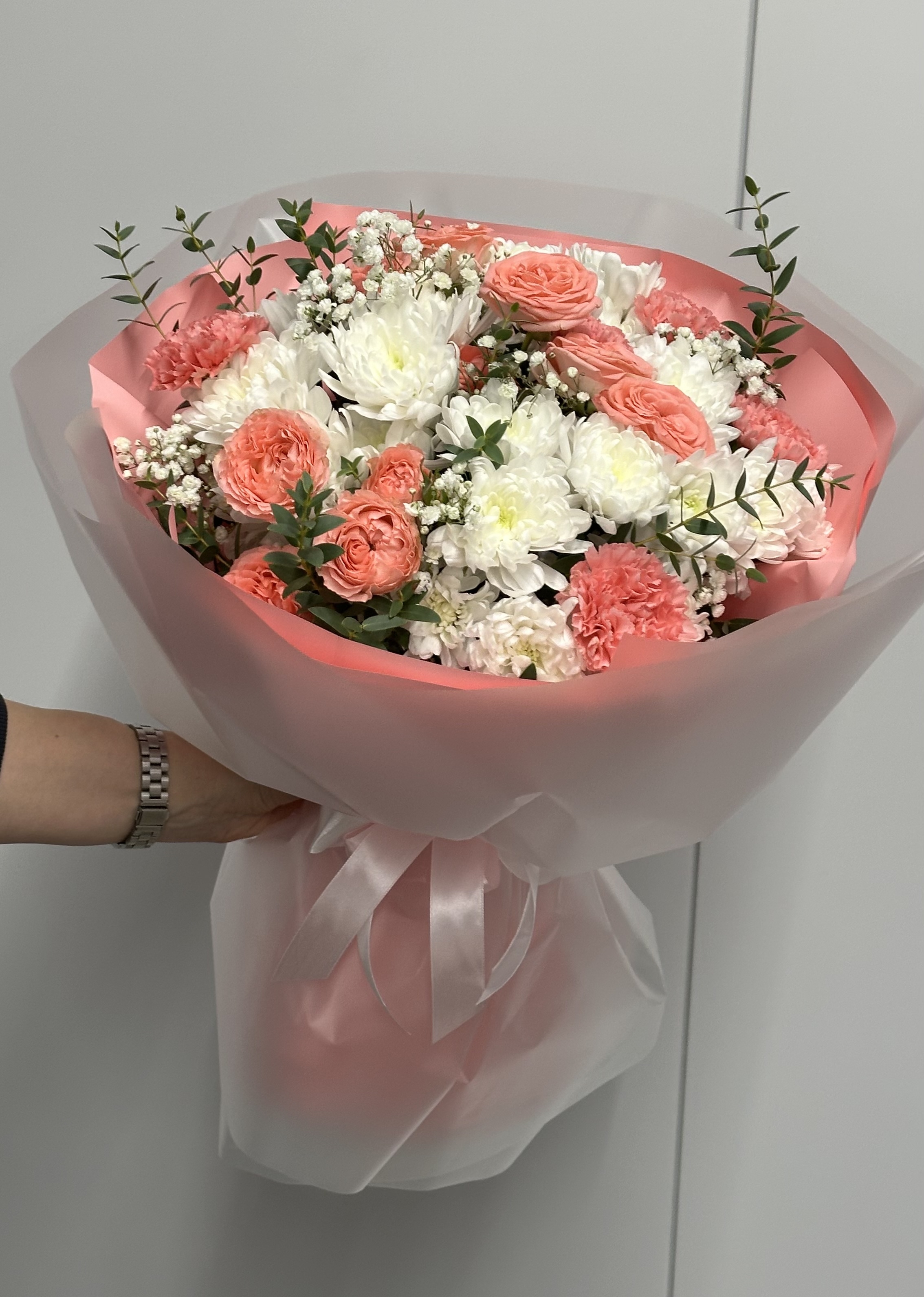 Микс-букет (хризантемы, кустовые розы, диантусы)