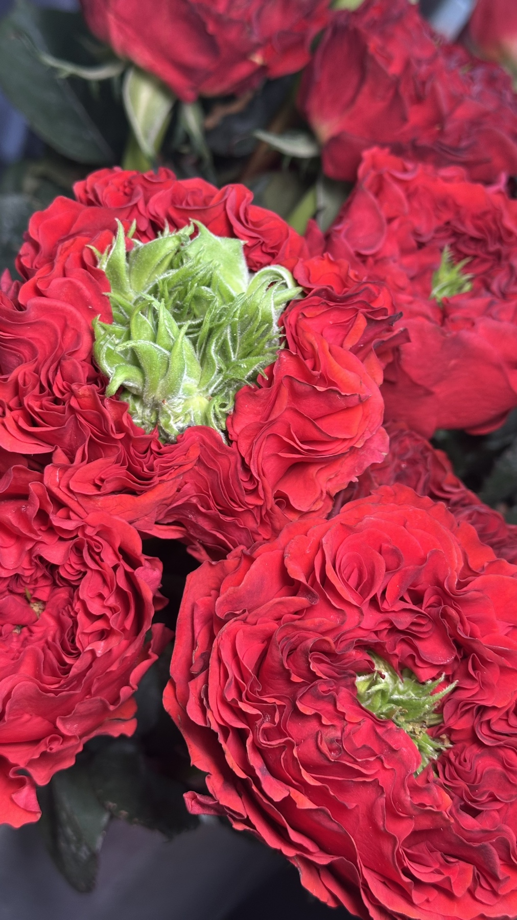 Сборный букет с разнообразным составом и контрастной гаммой, изюминка которого розы, которые невозможно не заметить - Red Monster