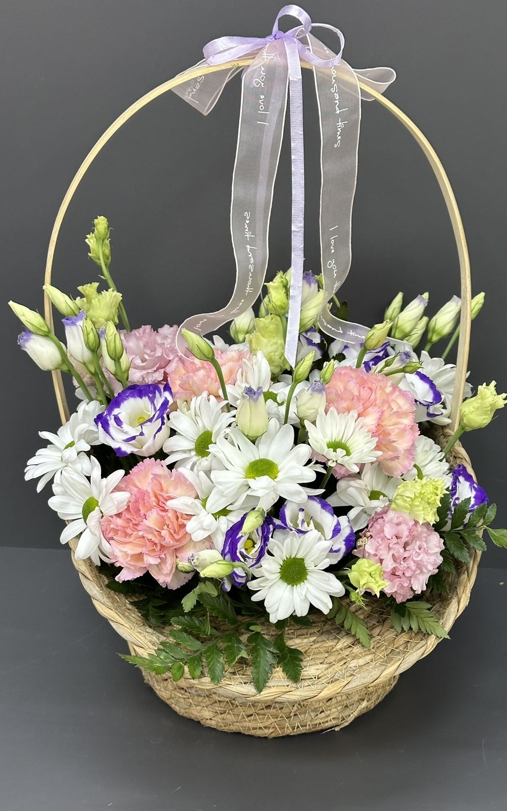 Гамма композиции может отличаться с учётом пожеланий клиента и наличия товара на момент оформления заказа.